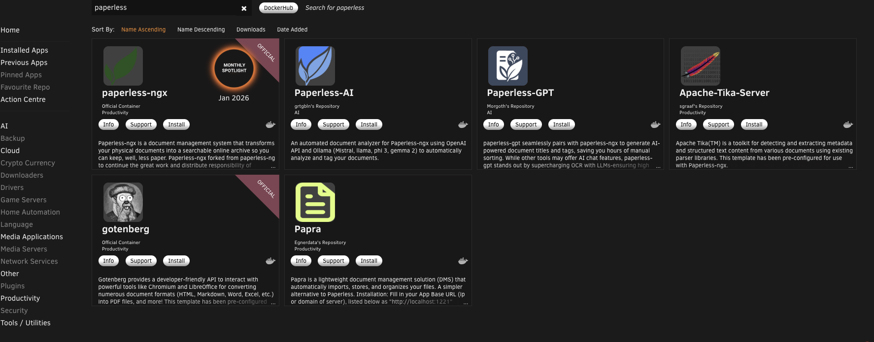 With Ollama and the models sorted, let's move over to the server running Paperless. Head to the Apps tab, search for Paperless, and install Paperless AI.